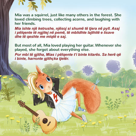 Mia is a little squirrel with a big dream: to perform on stage. When her friends need help, Mia faces her fears and discovers that she can bring joy to everyone around her with her music.