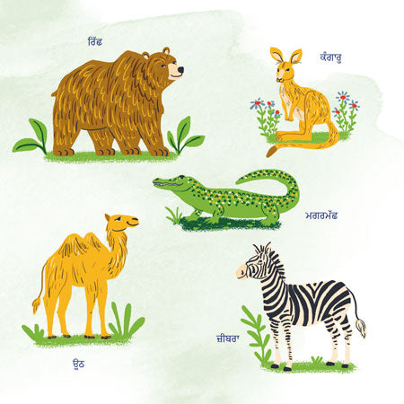 ਬੱਚੇ ਦੁਨੀਆਂ ਭਰ ਦੇ ਜਾਨਵਰਾਂ ਦੇ ਨਾਮ ਜਾਣਨਗੇ — ਜੰਗਲਾਂ ਅਤੇ ਸਮੁੰਦਰਾਂ ਤੋਂ ਖੇਤਾਂ ਅਤੇ ਬਰਫ਼ੀਲੇ ਇਲਾਕਿਆਂ ਤੱਕ। ਹਰ ਜਾਨਵਰ ਨੂੰ ਰੰਗ-ਬਿਰੰਗੀ ਤਸਵੀਰ ਨਾਲ ਦਰਸਾਇਆ ਗਿਆ ਹੈ, ਜਿਸ ਨਾਲ ਬੱਚਿਆਂ ਨੂੰ ਨਵੇਂ ਸ਼ਬਦਾਂ ਦੀ ਪਹਿਚਾਣ ਅਤੇ ਯਾਦ ਰੱਖਣ ਵਿੱਚ ਮਦਦ ਮਿਲਦੀ ਹੈ। ਕਿਤਾਬ ਵਿੱਚ ਜਾਨਵਰਾਂ ਬਾਰੇ ਰੌਚਿਕ ਅਤੇ ਮਜ਼ੇਦਾਰ ਤੱਥ ਵੀ ਸ਼ਾਮਲ ਹਨ!