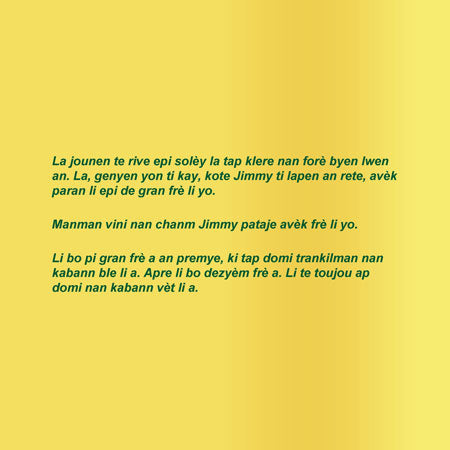 Ti Jimmy pa renmen bwose dan li yo. Menm si manman’l ba li youn bwòs dan oranj nèf, koulè prefere’l, li pa sèvi avèk li jan li dwe.